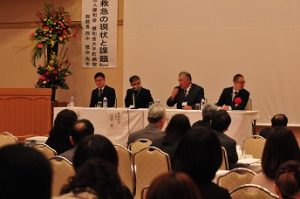 午後は、健和会大手町病院の西中徳治総院長より「一般科救急の現状と課題」と題した特別講演が行われ、北九州市の救急医療と精神科医療の連携の質が向上していることを実感させられました。最後のシンポジウムでは、「精神科救急の現状と課題そして未来」をテーマに討論が行われ、これからも翠会ヘルスケアグループが精神科医療の発展のために“ワンチーム”として取り組んでいくことを共有することができました。