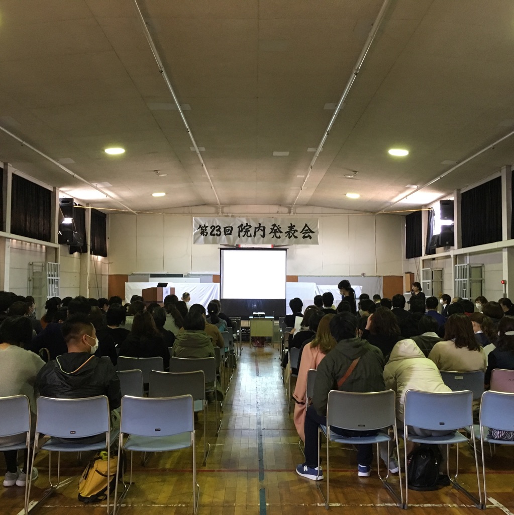 当院では研修委員会を設置し、職員の研鑽のために年間を通して様々な研修を行っています。その一環として院内発表会が年1回開催されており、今年で23回目となりました。今年度は、病棟だけでなく、医局や事務部、栄養課など全9部署から演題が出され、大変興味深い内容の発表会となりました。