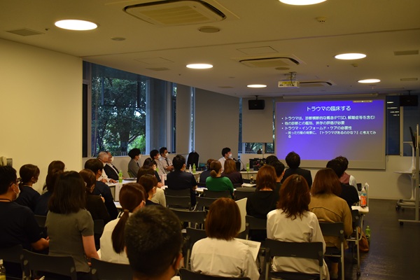 今回は6つの部署から発表が行われ、それぞれが日々努力している姿や成果を直接聞くとともに意見交換を行う機会となり、大変有意義な時間となりました。また、今回は特別講演として外部の専門家を招き、心のトラウマを抱える患者さんに対する専門的なケアの方法に関する講義も行われました。